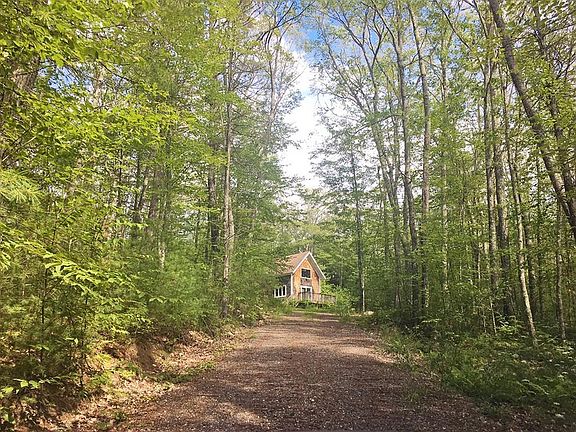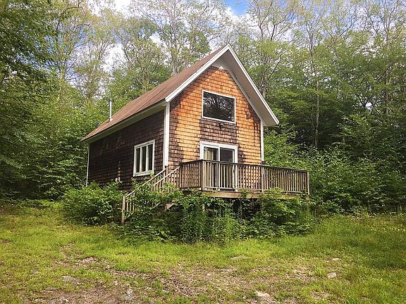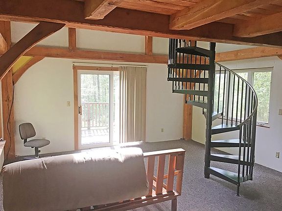 What a great cottage/small house. Post and Beam frame by Tom Musco of Royalston Oak; absolutely a work of art. Stress skin panels for high efficiency, natural cedar shakes for beauty and low maintenance. First floor completely open 32 x 17 except for the full bath in the back corner. Spiral staircase to 2/3 loft above providing private sleeping space. Full 3 bedroom septic and artesian well. Solar panels on south side of roof and a high tech control system to keep the batteries charged. YES, this house is off the grid. Lot is almost 1,000 ft deep with 360 ft of frontage, VERY private. And it backs up to TTOR reservation land that contains the Nichewaug Ridge Trail that goes from the Swift River just to the south, to Carter Hill. Just a fabulous trail for walking, XC skiing or mountain biking. Swift River with great fishing and swimming is a very short walk away. Extensive additional trails begin down by the river at the Steel Bridge. A fabulous, year round country retreat or sm home.