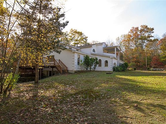 Set 150 feet off the road on just over 5 private acres, this 2,900 sq. ft. 3 bed and 2 bath home reflects the owners focus on simplicity and elegance. Hardwood floors abound. A grand foyer greets you as you enter and the use of soothing classic arches throughout the home along with the infusion of nature via windows, skylights and porches reminds us that this home is different and special. The kitchen has granite counters, skylights, a fireplace and slider access to an expansive deck which is wonderfully private, inviting and connects to the fire placed living room with stone fireplace and wood stove insert. A first floor master bedroom and laundry room are appreciated conveniences. Exploring the upper level, a reading nook greets you at the top of the stairs and along with the two remaining bedrooms and full bath, there is spacious music room with hardwood flooring and generous natural light. The full unfinished walk out lower level has steel I beams supporting the main level this is a great space for artisans and craftsmen to create and enjoy their dream work space. The oversized 2 car attached garage offers space for equipment storage and hobby pursuits again with overhead steel I beam construction is a great asset for the car enthusiast or working on equipment and large projects.