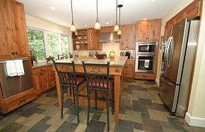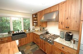 What could be more dramatic than a contemporary home perched above the river with a waterfall thundering below it? Around the bend of the river, the water runs over the rocks, and you can fish for trout in the stream. Over the past five years this home has been renovated to meticulous standards. You'll find slate flooring with radiant heat, red birch floors, and a chef-designed kitchen with cherry cabinets, granite counters and high-end appliances. Three baths feature slate floors and tile surrounds in the showers. There are three bedrooms with a first floor master suite and areas for a home office and a family room, too. A deck across the back of the house with a hot tub is the perfect party space. This home will take your breath away.