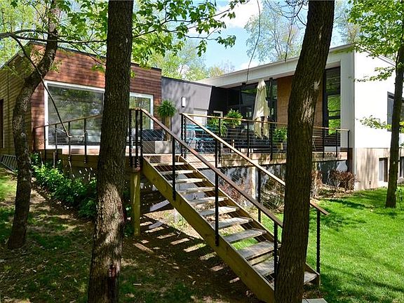 CUSTOM"MINI ESTATE" IS SITUATED ON AN INCREDIBLE 5+ PRIVATE TREED ACRES, LIVE "EVERYDAY" AS IF YOU WERE ON VACATION IN THIS MODERN HOME WHICH OFFERS AN OPEN INDUSTRIAL FLOOR PLAN AND A 5'X11' STEEL & GLASS MAIN ENTRANCE DOOR TO WELCOME YOUR GUEST. YOU WILL FIND WALLS OF WINDOWS THAT OPEN AS DOORS & GREEN CONSTRUCTION. "A TREE HOUSE" WITH ELECTRIC & HVAC WHICH IS AN OFFICE.YOU WILL LOVE TO ENTERTAIN IN THIS GOURMET KITCHEN IT OFFERS A FULL SIZE REFRIGERATOR-ICE DRAWER-FREEZER DRAWER-INDUCTION COOKTOP, MARBLE COUNTERTOPS PLUS MORE. THE PRIVATE OUTDOOR LIVING SPACE VIEWS THE MAIN LIVING AREA FOR ULTIMATE ENTERTAINING AND OUTDOOR GRILLING. STUNNING ARCHITECTURE & UNIQUE ELEMENTS DESIGNED BY AN AWARD WINNING ARCHITECT. STRUCTURAL STEEL WITH POLISHED RADIANT CONCRETE HEATED FLOORS. EFFICIENT ENGERY SYSTEMS.THE FAMILY ROOM HAS WHITE OAK FLOORS & FIREPLACE. THE ROOF IS EPDM'COOL ROOF' & METAL. PARTIALLY HEATED DRIVEWAY. HEATED WITH PROPANE & ELECTRIC. AN ABSOLUTELY REFRESHING MASTER SUITE.