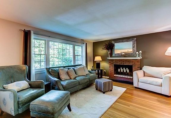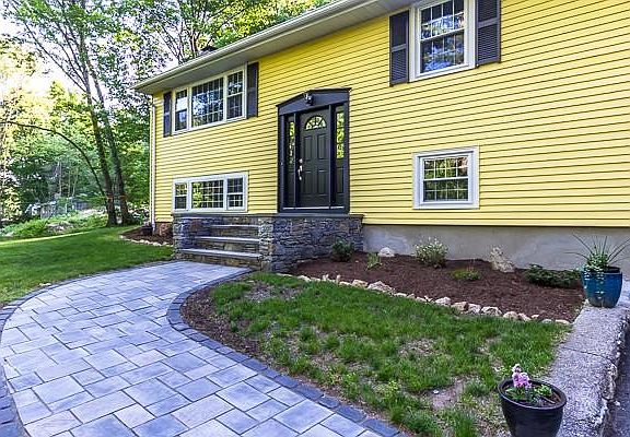 Showings start at open house Sunday, June 5, 12-2pm. Beautiful 3 bed, 2.5 bath, split level home across ~2000 sq. ft. Newer roof, windows, furnace, hot water heater, updated bathrooms & central air. Home offers Spacious eat in kitchen with stainless appliances that opens into the family room with fireplace. Gorgeous sunroom with dual French doors and bamboo floors overlooking wooded backyard, great for BBQs. Master bedroom with private bath. All first floor has hardwood floors. Finished lower level with family room with fireplace, full windows and newer carpet, 1/2 bath, laundry, office & workshop. Playground is included. Quiet neighborhood directly across the home and easy access to all major routes, schools, and commuter rail. OFFERS TO BE REVIEWED MON AT 5PM.