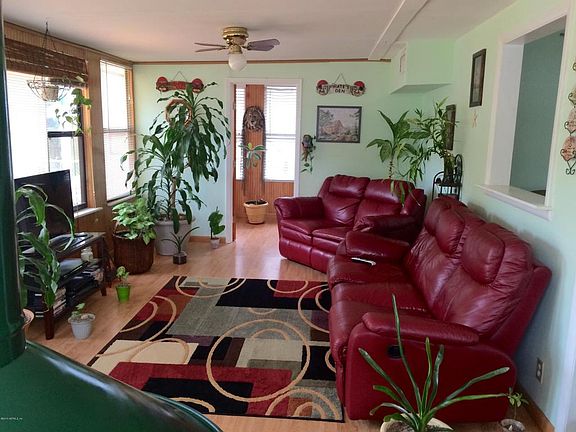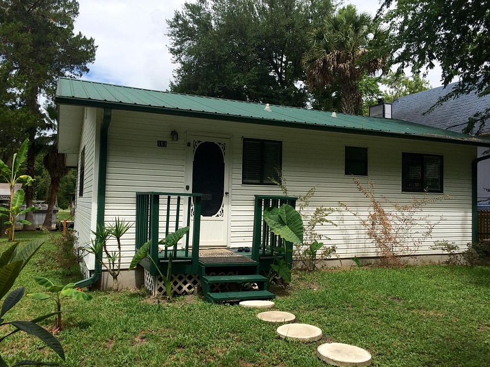 Charming Fishing Bungalow! On a great canal just minutes to the St. Johns River. This home features open kitchen with breakfast bar, wood burning fireplace, nice waterfront views, inside laundry and open deck. Bulkhead metal roof and fenced in yard.