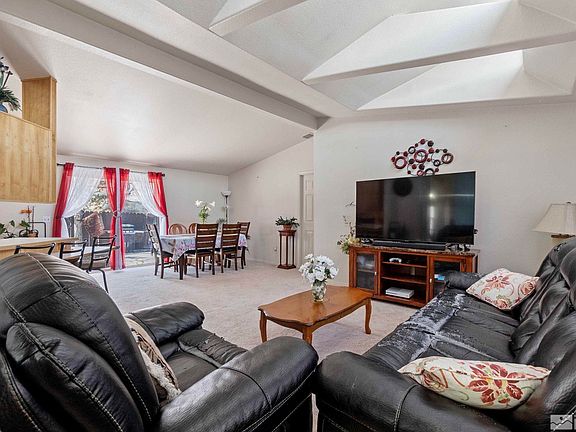 The property located at 161 Platinum Pointe in Reno, Nevada is a beautiful single-family home situated in a quiet and gated community. The property has three bedrooms, two bathrooms, and a two-car garage, providing ample space for a family or individuals looking for a comfortable living space. The exterior of the home is well-maintained, with a neatly trimmed bushes and landscaped yard with great potential for a garden in the back yard. The front entrance features a covered porch that leads into the main, leads into the main living space. Upon entering the home, you are greeted with a spacious and open floor plan that seamlessly connects the living, dining, and kitchen areas. The living area features large windows that let in plenty of natural light, creating a warm and inviting atmosphere. The kitchen is well-appointed with modern appliances and ample counter space, making it perfect for those who love to cook and entertain. Additionally, there is a breakfast bar for casual dining and a separate dining area for more formal occasions. The master bedroom is spacious and features an ensuite bathroom and a garden tub and shower. The two additional bedrooms are also generously sized and share a full bathroom. All of the bedrooms have large windows that provide plenty of natural light and offer beautiful views of the surrounding landscape. The home also includes a two-car garage, providing secure parking and additional storage space. The backyard is fully fenced and features a patio area, making it perfect for outdoor entertaining and enjoying the beautiful Nevada weather. In terms of location, 161 Platinum Pointe is located in a peaceful and secure gated community, providing a safe and comfortable living environment for residents. The property is conveniently located close to shopping, dining, and entertainment options, as well as being within easy reach of major highways and transportation links. Overall, this property at 161 Platinum Pointe Reno, NV 89506 is a beautiful and comfortable home that provides ample space and modern amenities in a secure and convenient location.