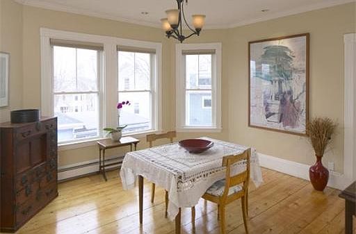 This top-floor brilliantly sunny renov 2br condominium is located on a side street close to Raymond Park, Huron Village's shops and restaurants, and to Porter Square, with many more restaurants, shops and a Red Line T Stop connecting to Harvard, MIT, MGH, and Boston's legal, financial districts. There are long views from nearly all of the unit's oversize windows, and there is an oversize kitchen skylight and a bath skylight. The unit has roof rights giving the option to add more. Beautifully configured, the residence has a living room with a large bay window and a wood-burning fireplace; this room opens through a double door to the ample dining room. The bright open and large eat-in kitchen leads directly to a large screened porch nearly twenty feet long. Beautiful wood floors, high ceilings, vintage-style bath with beadboard, large private storage in the basement, and exclusive use of the driveway, make for a very appealing offering. No open houses due to holiday, please make appt.