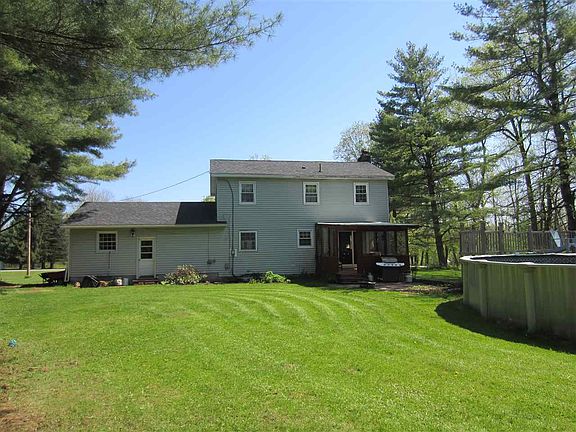 One block outside the Village of Potsdam, this colonial two story is move-in ready. 4 bed/2.5 bath with 2 car garage on a 1.4 acre lot features a large family room with hardwood flooring stretches from the front of the house to the back. You can walk out the sliding glass doors to the screened in deck to enjoy in the summer. In the winter, you can cozy up to the wood-burning, brick fireplace. The kitchen has been nicely updated and features a center island with breakfast bar. The formal dining room is brightened by a large bow window. A half bath with pedestal sink is conveniently located between the kitchen and family room. The center foyer takes you up the stairs to 4 bedrooms, all with hardwood flooring and closets. The master bedroom has 2 closets and en suite 3/4 bath. There is also an additional full bath to accommodate the other 3 bedrooms. An above ground heated pool was installed in 2015. The 2 car attached garage also has stairs to access to the partially finished carpeted basement. The roof and seamless gutters are only 4 years old. Taxes shown do not include the STAR exemption.