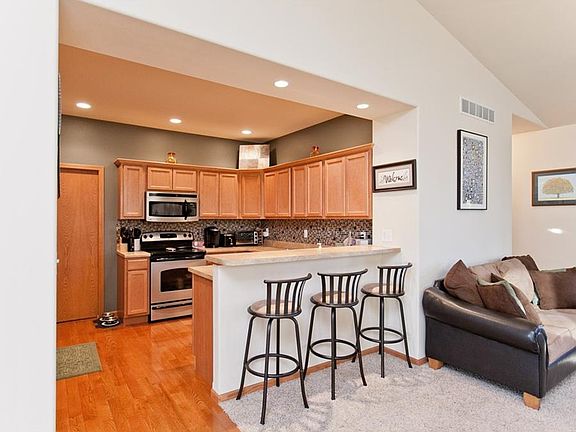You won't want to miss this 3 bedroom condo located on the pond in Fairfax, Iowa. There is an updated backsplash in the kitchen, a breakfast bar that can sit three and an open floor plan to the living room with sliders to the semi-private deck and custom window treatments. This condo is conveniently located in the College Community School District and minutes away from Kirkwood Community College, Interstate 380, and The Eastern Iowa Airport. Just off the kitchen is the main floor laundry and master walk-in closet outfitted with pocket doors. The spacious master bedroom has vaulted ceilings and a relaxing pond view. The lower level is finished and hosts a family room/ bedroom/full bath/ library (that can be easily converted to a 4th bedroom) with LOTS of extra storage space. All appliances will stay, including the water softener. Pond association fee is $100 for the year and fishing is acceptable on the pond.