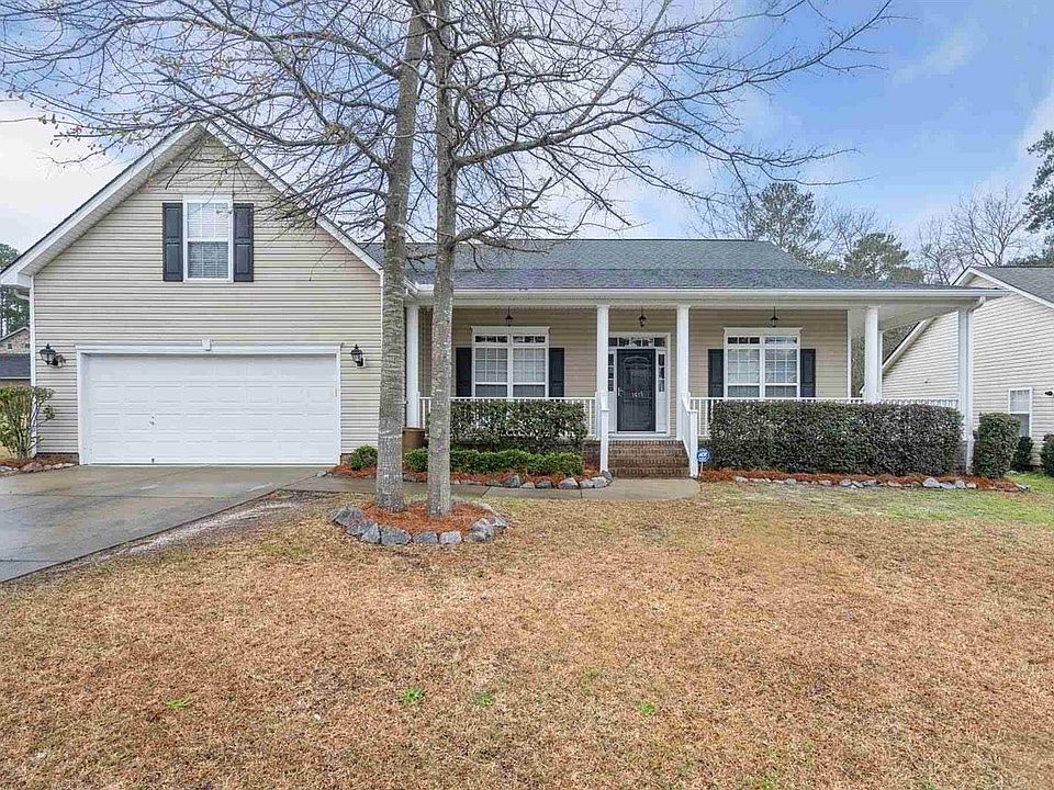 Welcome to your NextHome!  This beautiful 3 bedroom 2 full bath home features front wrap around porch with a 2 car garage!  Inside features open floor plan with high ceilings -  flex room, great room with a cozy fireplace, Eat-In Kitchen with breakfast bar, stainless appliances, solid surface countertops, pantry and formal dining room!  Master Suite features tray ceilings, double vanity, garden tub w/ separate shower & walk-in closet!  Two additional bedrooms and FROG!  Home is set up with smart thermostat & light switches for inside & outside!  Security system with 7 cameras & recorder.  Enjoy your privacy fenced spacious flat backyard with screen in porch w/ deck and shed!  Convenient to I-20, 378 & Hwy 1!