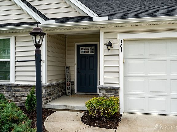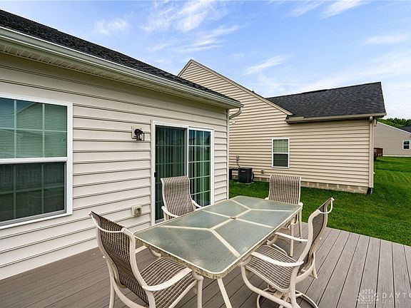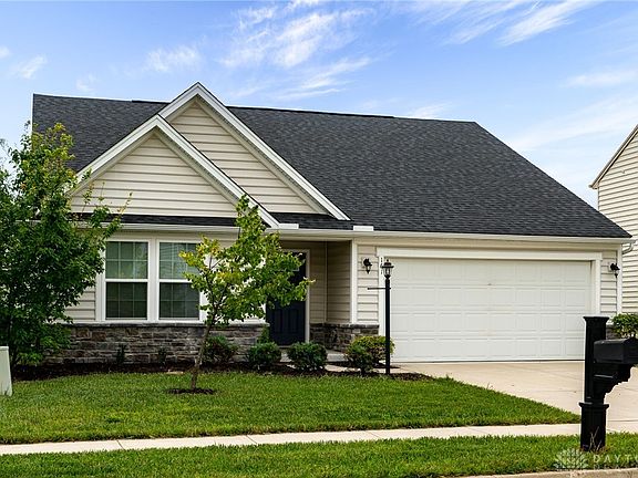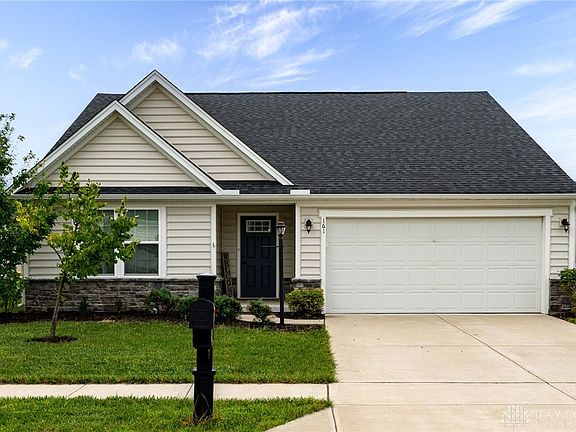 Only 5 years old and shows as though it has never been lived in. Attractive stone and vinyl ranch home with over 1400 Sq. Ft. of living area. Conveniently located within minutes of Wright Pattersopn Air Base, Interstate, Shopping and Entertainment. Large spacious entry with trey ceiling. The floor plan is very open and inviting. Kitchen includes 42" cabinets, granite counter tops, stainless steel appliances, 7' work and breakfast island, pantry and is open to the Great Room. Great Room is spacious and features 9' ceilings. Very popular slit bedroom floor plan. What was designed as an office could very simply be used as a 3rd bedroom. Primary bedroom features a walk-in closet and spacious bath with double vanity and shower. Rear yard is accessed through the breakfast area and features a 14 x 12 composite deck. Terrific location and well-maintained neighborhood. Do not let this one pass you buy. Move-in ready