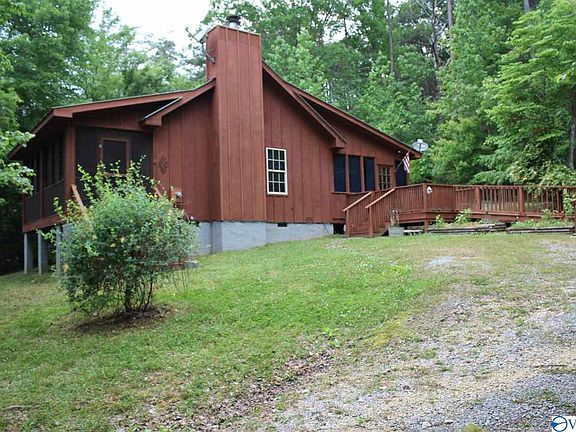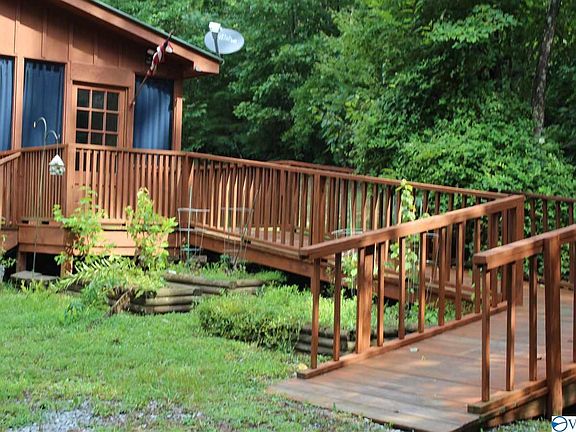 MOUNTAIN CABIN CHARM is waiting on yu! This is where cherished memories are made. Open plan allows Living Room, Dining Room, Kitchen in main living area with high vaulted ceiling, exposed beams, and fireplace. One level living! The extra large master bedroom is surrounded with windows and plenty of room for extra living space. This room can also be used as a sunroom or den. Large deck on side with handy ramp access. Spacious screened front porch to enjoy the view. Lot situated for privacy. You'll enjoy being within walking distance to Eberhart Point and Little River Canyon! Only $92,500.