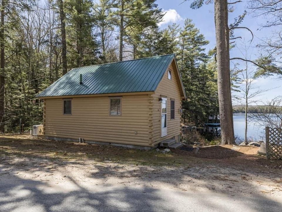 Charming log cabin on West Pond with 150 feet of owned waterfront.