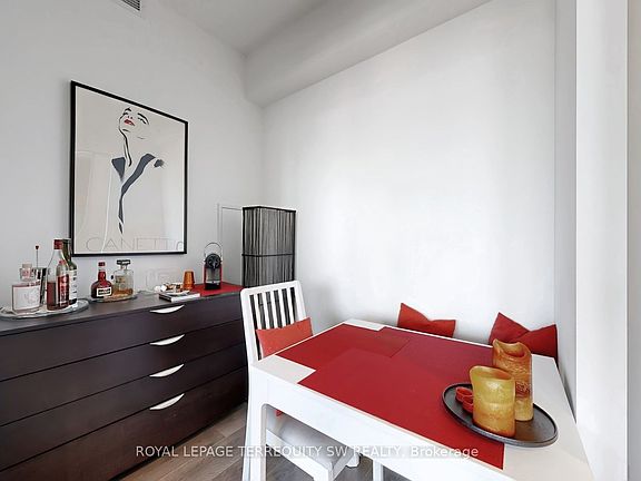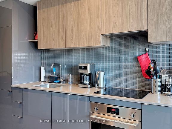 Bright and thoughtfully designed 1-bedroom plus den suite with clear west-facing views, offering 584 sq. ft. of well-planned interior living space plus a 121 sq. ft. private balcony. This modern residence features an open-concept layout with 9-foot ceilings and expansive windows that fill the suite with natural light throughout the day. Upgrades include wide-plank laminate flooring, contemporary lighting, and a sleek European inspired kitchen with quartz countertops, integrated appliances, and a modern tile backsplash. The versatile den is ideal for a home office, study, or reading nook. Residents enjoy an exceptional collection of amenities, including 24-hour concierge, fully equipped fitness centre, sauna, outdoor lap pool, hot tub, golf simulator, party room, guest suites, BBQ terrace, and more. Unbeatable Yonge & Eglinton location-steps to the subway, TTC, shopping, dining, parks, library, and cinemas. Ideal for a single professional or couple seeking comfort, convenience, and style. Flexible move-in available.