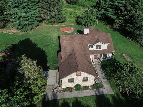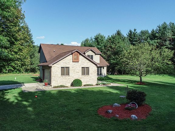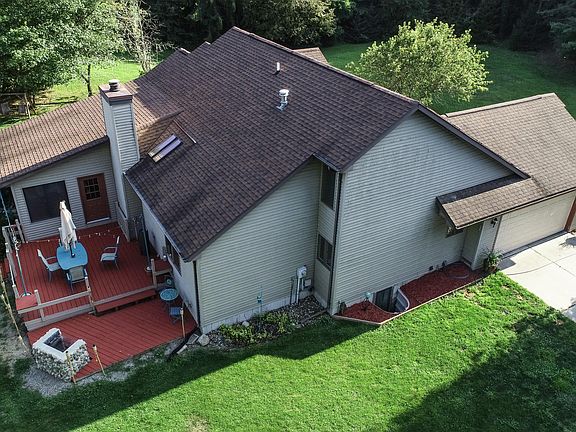 Charming home located on nearly ten acres of wooded property with groomed hiking trails and abundant wildlife. This home highlights 4 bedrooms, 3 1/2 bathrooms, serene four seasons room, spacious finished basement, peaceful back deck and outdoor entertaining area with field stone grill, 24x30 pole barn, 10x12 cabin in the woods, and attached two car garage with backup generator hook up. Cozy living room features dark wood flooring, fixed skylight, and large brick wood burning fireplace. Classic kitchen with oak cabinets, quartz counter tops, center island, and stainless-steel appliances. This house has been very well maintained and is ready to be yours. Call today to schedule a showing to check out this enchanting home!