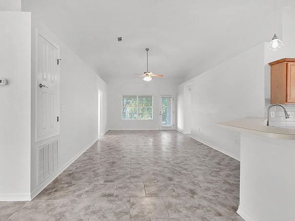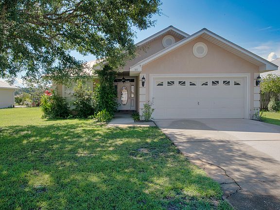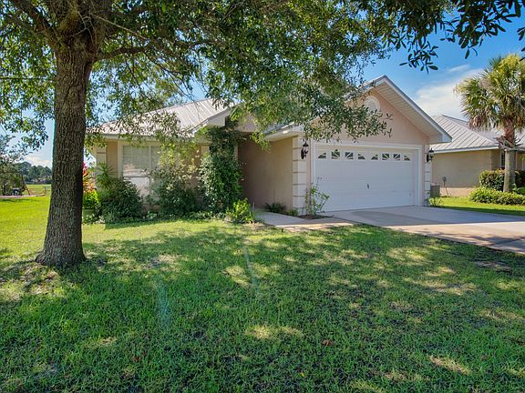 Look at this well-priced and move-in ready 4 bedroom and 2 bath home in the established community of Driftwood Estates. This neighborhood offers fishing ponds, community pool, playgrounds, tennis, pickleball & basketball courts. Perfectly located within 5 miles from the Grand Boulevard shops & restaurants, Sacred Heart Hospital, and public beach access. This beautiful home has an efficient split bedroom floor plan with vaulted ceilings, renovated bathrooms, freshly painted interior and porcelain tile flooring throughout. The spacious kitchen has new stainless-steel appliances with a great breakfast bar and an extra eating area. This well-maintained home has a metal roof with a covered patio that looks out over the pond that will allow you to relax and enjoy the peaceful view & surrounding!