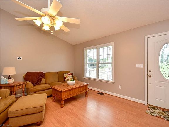 Extraordinary one level living, this single owner home has a level lot, NEW high efficiency HVAC unit, split bedroom plan, fresh paint in living areas, and an oversize attached garage for your toys. An add't detached storage building provides additional space. Deck overlooks expansive rear yard great for entertaining. Convenient to Belews Lake - bring your boat! Well maintained and ready for new owners.