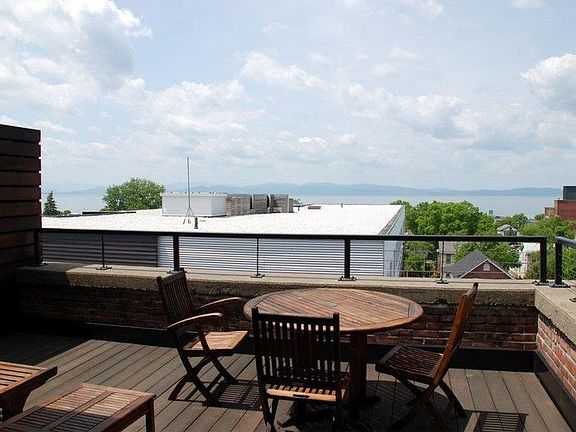 Walk to everything! Flynn Theater, Church Street Marketplace, restaurants & more - All steps from your door! Easy downtown living! Open floor plan, kitchen with stainless steel appliances, black granite countertops & island. Master with walk-in closet. Spacious full bathroom with tile floor & large linen closet, stackable washer/dryer. Central air, maple floors & birch doors. Plenty of natural light! Sleek modern lobby. Shared rooftop deck & lounge with Lake Champlain & Adirondack Mountain views! Secure building with leased off-street parking, elevator service & lower level storage units. $42/mo special assessment for brick re-pointing.