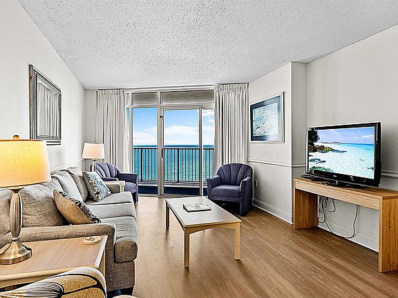 Welcome to this charming 2 Bedroom, 2 Bath oceanfront condo in the North Tower of the Seawatch Resort. Enjoy stunning Atlantic Ocean views from the 15th floor, where the spacious balcony offers a perfect spot for your morning coffee. The recent updates include quartz countertops in the kitchen, modern luxury vinyl plank flooring throughout the whole condo, new curtains and updated furnishings in the living room, dining room and master bedroom, making it an ideal second home or investment property. The Resort sits on 10 acres and features many amenities: 5 outdoor pools, 2 indoor pools, 12 Jacuzzis, lazy river, an oceanfront restaurant/lounge, fitness room, Tiki bar, coffee shop and much more.