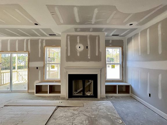 Stewart floor plan in beautiful Goodwin Chase community, with 3 bedrooms, 2 1/2 baths, and play room! Kitchen features gorgeous cabinets, beautiful granite countertops, tile backsplash, stainless steel appliances & island. Huge living room with cozy gas log fireplace & lovely bench window seats! Main suite showcases a ceiling fan, double walk-in closets & 5 ft shower. Relax on the covered back porch that overlooks the spacious backyard. Photos of similar homes and cut sheets are for representation only and may include options, upgrades or elevations not included in this home.
