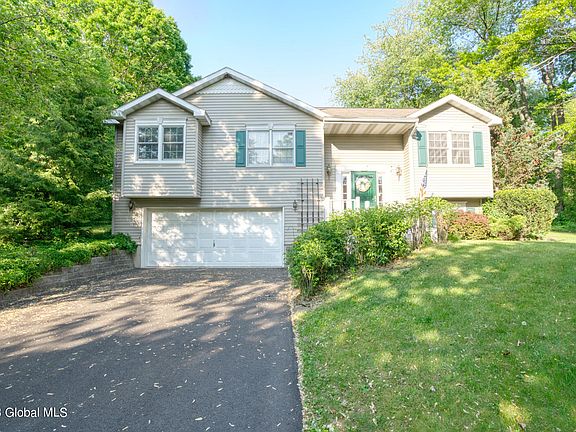 Privacy and serenity are yours at 161 Shaker Rd, Albany. Built in 1994, this raised ranch home is full of light adding to the open concept feel of the living space. Updated chef's kitchen with solid service and stainless flows into the open concept dining/family room with vaulted ceilings and hw's. Off the kitchen/living room, you'll find a massive sunroom with vaulted ceilings that doubles as a family room with gas fireplace. Updated forced air system installed in 2018. 3 bedrooms upstairs as well as a master bath an additional full shared bath. 1st floor offers 1/2 bath, family room (could be 1st floor bedroom) and laundry with 2 car garage. All this on almost an acre of gorgeous gardens, patios and green space. Albany School District. Open house Saturday, May 20th 1-3pm.