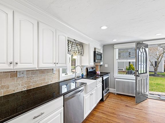 Charming yet sophisticated. This 2 Bed/1 Bath Cape offers a warm and happy quality of life. From the architecture, built-in cupboards and drawers, to the nooks & crannies. Hardwoods run throughout both main levels. Just inside, a classic black & white galley kitchen is complimented by granite tops, stainless appliances & recessed lighting. Flowing nicely to the dining room w/one of many old world crafted built-ins. Just around the corner is a spacious & warm, fireplaced family room; w/access to an adorable screened-in porch. Just a lovely setting for gathering. Upstairs, the Full bath is tiled w/wainscoting & sconce lighting. Spacious Master offers extra room, ample closet space & storage. Each bedroom is complete with built-in drawers & updated lighting. Partially finished basement allows flexibility for an office or gym area. Outdoors boasts relaxation, fun & value from the swimming pool, to the very spacious deck, pergola, irrigation, superb landscaping and fire pit/patio area. Wow!