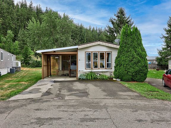 Welcome to 8-161 Shuswap Ave, set on the **largest pie-shaped lot in the park**! This well-kept home offers excellent value with thoughtful updates and plenty of extras. The spacious updated kitchen features ample storage and French doors leading to a screened patio—perfect for summer living. The bathroom has been refreshed with a new tub and surround, while the furnace (approx. 2012), hot water tank (2021), and freshly cleaned ducts (2025) provide comfort and peace of mind. A durable tin roof adds both longevity and FireSmart security. Outside, you’ll find three versatile outbuildings including a former greenhouse and a “man cave” or “she shed.” The property also includes a carport and is prewired for a wheelchair lift. Located in a clean, pet-friendly park with restrictions, this home offers easy access to all Chase amenities, just steps away. Enjoy golf, recreation, and the beauty of Little Shuswap Lake right at your doorstep. Priced to move.