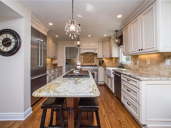 The charming home oozes curb appeal and has recently been lovingly updated throughout. The quality of construction is apparent as soon as you enter the stunning two story entry. The triple crown moldings run through the entry, LR, DR, hallway and powder room. Beautifully refinished hardwood floors on the first floor. Complete kitchen remodel in 2015. Custom cabinetry in rustic maple, island and desk area. Banquette seating and storage in the bay window area. Farm sink, gorgeous granite counter tops (African Tobacco), travertine back splash, new appliances. Family room is cozy and welcoming with a stone raised hearth electric fireplace. Casual, easy entertaining with the white marble topped bar area. French doors lead to the back yard. Lower level is multi-purpose. One room now used as play area would make a great media room. The back yard is completely fenced in and flagstone surrounds the in ground pool-cement construction with cover. Too many updates to mention here!!
