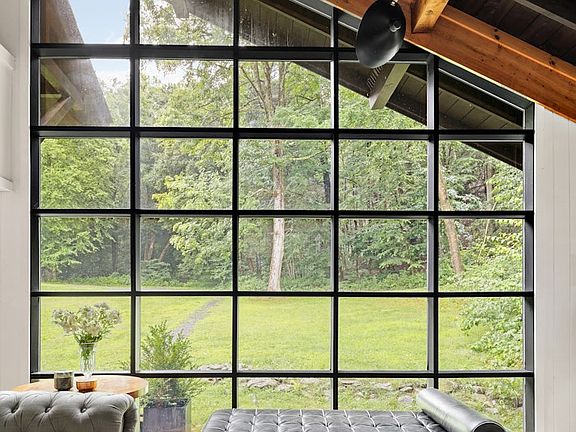 Architecture meets nature in Hillsdale. A fully secluded getaway at the end of a private dead-end road on 7 pristine acres. This sunny 3-bedroom, 2-1/2 bath house is inspired by Scandinavian design and features 3 outdoor decks, with views of a spring-fed stream, a crystal clear pond, and deep green woodlands. Central AC for summer days and a wood stove for snowy nights. An ideal layout for working from home and for guests, this well-maintained house includes a ground-level walkout room which would be ideal for a studio or for entertaining. Reimagined by a fashion editor and creative director, 10 minutes from Great Barrington and 7 minutes to the Catamount Ski Resort, this property is situated between the Berkshires and the City of Hudson, with endless shopping, food and cultural destinations.