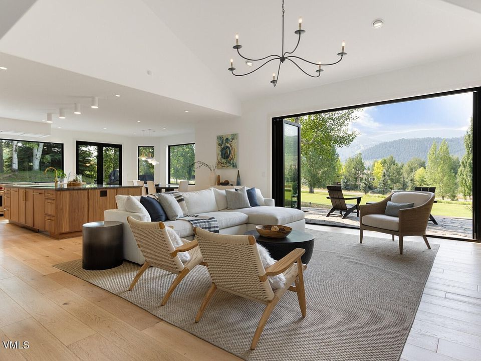 Situated on the 7th fairway of the prestigious Singletree Golf Course, this exceptional single-family home is a study in harmony—seamlessly blending architecture, nature, and thoughtful luxury. Grand floor-to-ceiling glass doors frame the fairway & views of Arrowhead Mountain and expand by accordion doors to private patios. Chef's kitchen with quartzite island is wrapped in walnut cabinetry, adjacent to a custom wet bar. A cozy slate fireplace anchors the living room, while adjacent spaces include a powder room, home office, and a flexible family/guest bedroom. Upstairs, the expansive primary bedroom is a sanctuary, with its own private patio, tranquil views and a walk-in closet tailored for luxury. The spa-like bath features a glass-walled wet room with a soaking tub, chromotherapy and aromatherapy steam shower & integrated Bluetooth speaker system. Junior primary offers privacy with an ensuite bath.