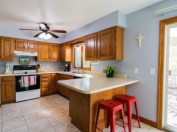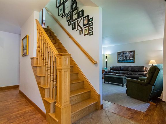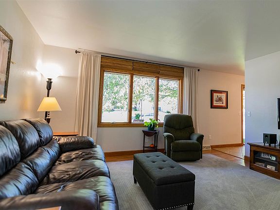 Light and bright--this welcoming 1 1/2 story walk-out home features 4 bedrooms, 2.5 baths and 3 garages. Large kitchen features lots of cabinets, breakfast bar and appliances remain. Recently remodeled main floor bath features in-floor heat, marble counter & custom vanity. Main floor offers 6-panel oak doors, trim and new staircase. Large master bedroom on main floor. Two 15x19 bedrooms upstairs in addition to a half bath. LL family room is being used as a workshop & all items will be removed. Deck w/steps leads to level backyard. Swingset is negotiable. Newer central air and water heater. The 2-car detached garage is heated. Great location, walking distance to park. Set up an appointment today to see all that this home has to offer.