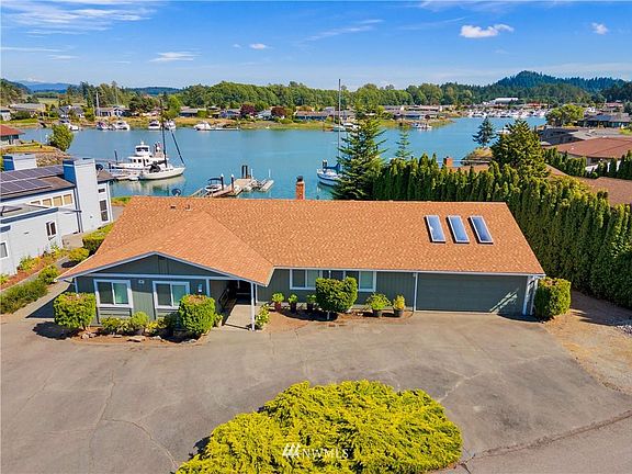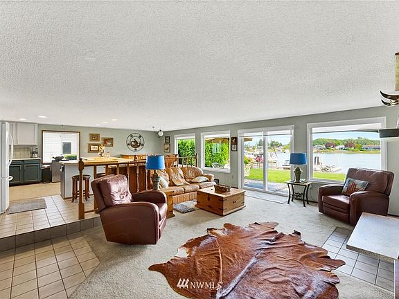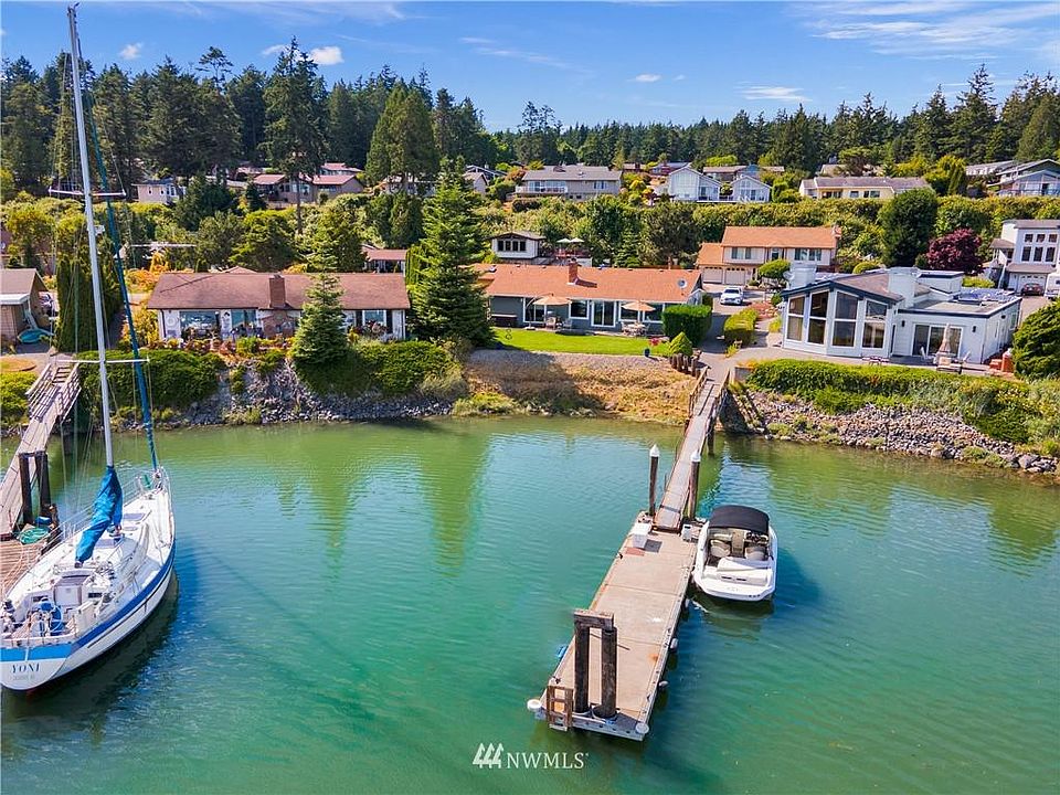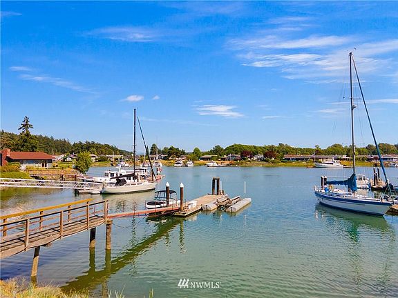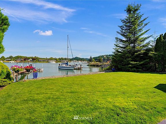 Incredible waterfront home in Shelter Bay! Imagine having your boat steps away on your shared 40' concrete dock w/power & water. Docking is easy! Perfect for get togethers & entertaining you will love your back patio and large backyard. The views are amazing! Open floor plan with kitchen, living room & dining area all overlooking the water. Big bonus room makes a great home office or game room. Large master bedroom also faces the beautiful views and enjoys direct patio access. Shelter Bay has fabulous amenities such as beach access, pool, clubhouse, sports courts, Par 3 golf course and much more. You will love living in the quaint town of La Conner and having easy access to both Hwy 20 and I-5. Act quickly!***On lease land***