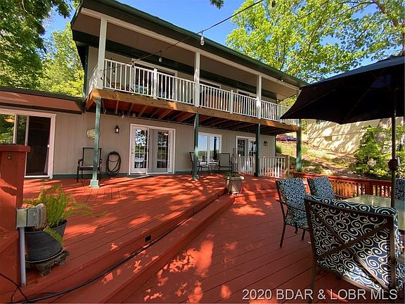 This is a WOW. Updated home with new bathrooms,roof,tile,and carpet.Huge deck.Concrete dock w/swim platform.Large bonus room gives you a great second living area or bunk room. Great view of the main chanel of the Niangua arm with cove protection.There are 2 lots one with the house and the other with the garage. Giving you 170' of lake front.Paved roads all the way to the house. This home is perfect for your week-end get-a-ways or full time living.Dock permit is for 32X26 which could be a two well instead of a one well with swim platform.See attachments