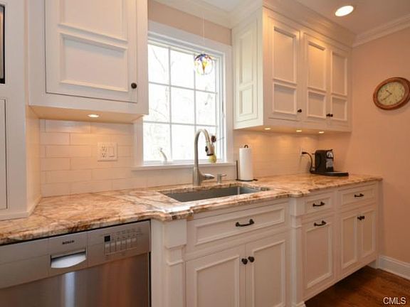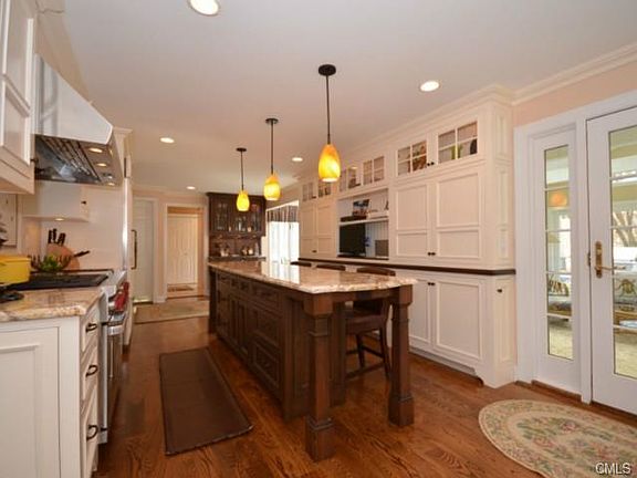 Stately four bedroom colonial sitting elegantly on a pretty cul-de-sac in Greenfield Hill. Lovingly maintained and updated with a stunning gourmet kitchen leading to the large living and family rooms with fireplaces, as well as the sun room , deck and yard. The two room master bedroom suite features a sunny sitting room and a spa bath, there is a newly finished lower level with a full bath. The back yard has woodland views and privacy. This home complete with a flexible floor plan, hardwood floors, and a convenient location, has everything you want for today's casual lifestyle!