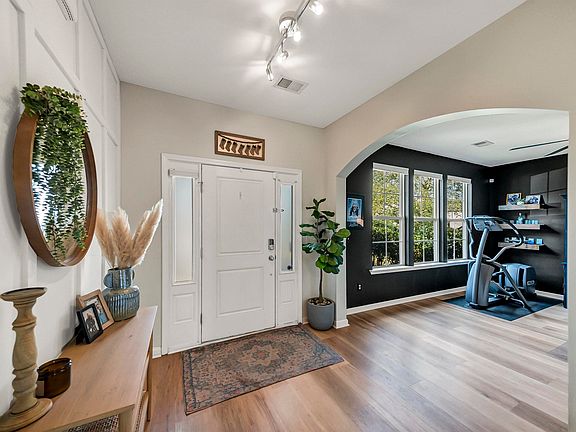 Welcome to 161 Tannery Way, Lexington, SC 29073! This stunning one-level, Craftsman-style home in Bluefield West features stone accents and welcoming entry. An arched opening off the foyer leads to a large office/flex room. Past the foyer is the open living area with gourmet kitchen, dining area, and great room. The kitchen boasts GE Profile stainless steel appliances, sleek gray quartz countertops, raised-panel, stained birch cabinetry with crown molding, tiled backsplash, corner pantry, music port, and bar seating. The expansive great room is the heart of the home, boasting soaring vaulted ceilings and bathed in sunlight from oversized windows. Movie nights and gatherings are elevated by pre-wired 7.1 surround sound and built-in speakers, creating an immersive entertainment experience for family and friends. The primary suite includes a designer wood accent wall and large closet. An upscale barn door opens to the private bath with five-foot walk-in shower, water closet, linen closet, and large vanity with two sinks. Two bedrooms share a bath. Additional features include 9 ft ceilings, upgraded ceiling fans in all rooms, luxury vinyl flooring throughout and carpet in two bedrooms, a tankless water heater, smart home technology (Nest thermostat, SkyDrop sprinkler controls, and Chamberlain MyQ garage opener), large laundry closet with built-ins. Two car garage even has a utility sink. Enjoy outdoor living on the covered porch and extended 20’x22’ patio, overlooking a large, flat .35 acre lot with three-zone irrigation system and privacy fence. Neighborhood amenities include a pool, playground, and recreation area. Zoned for Lexington One schools: Carolina Springs Elementary, Carolina Springs Middle, and White Knoll High. Located 15 minutes from Columbia International Airport and 30 minutes from downtown Columbia, SC. Disclaimer: CMLS has not reviewed and, therefore, does not endorse vendors who may appear in listings.
