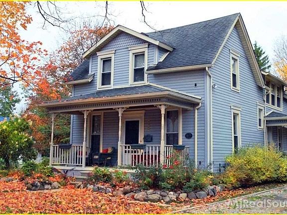 Gothic Victorian completely renovated 1999-2000 including all mechanicals, insulation, vinyl siding and windows, C/A, central vacuum, drywall, 2nd floor laundry, several closets, 2 sided gas fireplace (liv rm and den), privacy fenced yard w/10x12 shed & fenced in area for the Halloween props. The garage is an old lean-to (circa 1930). Partially finished basement offers 2nd laundry room and full bath (with heated floor) - 3 1/2 baths in all. Heating and cooling are top of the line systems, 200 amp buried elec. Deep 2 car wide driveway - parking for 6-8 cars. Halloween on Tillson Street!