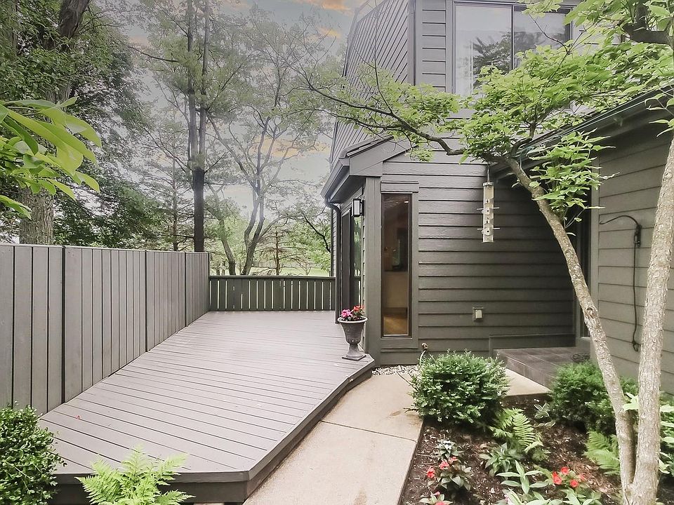 DO NOT MISS THIS LOVELY TOWNHOME WITH A FIRST FLOOR BED AND FULL BATH in a great location with an open view of the 18th hole golf course fairway from 3 outdoor spaces: 1) a large deck, 2) a recently rebuilt balcony off the dining room, and walkout patio; Inviting private courtyard entry; many updates including NEWER MARVIN WINDOWS throughout, kitchen with a hardwood floor, SS appliances, granite counters, cabinets with pull-out drawers; 3 main bathrooms updated; Upstairs and stair carpeting one year old; Hot water Heater 2017), Water Softener (2019) Heat Pump (2018) Newer low maintenance siding to reduce future HOA expense; 2-car garage with storage: Quiet cul-de-sac location; A Wonderfully cared for home in a UNIQUE RESORT STYLE GATED COMMUNITY with a 100 acre lake, Marina with a beach and sailboats, kayaks, canoes, fishing boat all for resident use; 37 acre forest preserve with walking trails; 8 tennis courts, bocce courts, pickle ball, in & outdoor pools, bocce courts pickle ball, RECENTLY RENOVATED COMMUNITY BUILDING with a fitness center, ball room, party room, game rooms and more; Lots of activities, planned and otherwise, FOR ALL AGES; Highly rated Barrington Schools; FULL TIME SECURITY