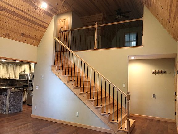 Charming home features high ceilings, a two story fireplace, 12x31 covered back deck, over-sized garage, loft space and an unfinished area above the garage that could be finished into a game room. Full basement offers endless potential.