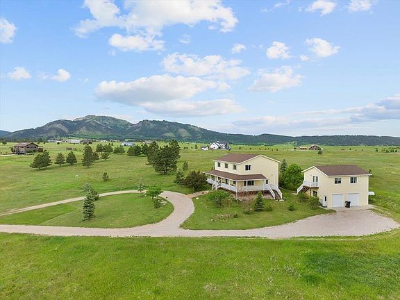 Listed with Spencer Rossi, Broker of Top Shelf Realty, 605-269-1600. Must tour in person to appreciate all this property offers with 7.5 acres, over 3,300 finished square feet between the house and guest quarters! Only 5 miles from downtown Spearfish, with captivating views of the three Queens: Crow Peak, Spearfish Mtn and Lookout Mtn, all seen from the front covered porch. If a house can be happy, then this one is! Full of tasteful color and intentionally designed to capture views from each room with tons of clear glass windows and doors to let natural light and the outside in. Guest quarters are above the detached garage and offer a private space with full kitchen, bathroom, one bedroom and living room...not to mention a small, sweet deck landing with a view! You can have 2 horses and there is plenty of room for an outbuilding. Residents enjoy the quiet road with little traffic and the frequent visits from the deer and turkey. Relax and listen to the birds chirp and the grass sway, all in awe of gorgeous sunrises and sunsets, not to mention the star filled night sky! Scoot out back to the concrete patio with picnic table sheltered by mature plantings. The main level laundry with exterior access and wash sink offers a spot to drop your shoes or gloves to clean up before proceeding into the kitchen. This home is close to Tinton Road which leads to mountain bike trails, ATV action, hiking, Iron Creek Lake and more outdoor fun!
