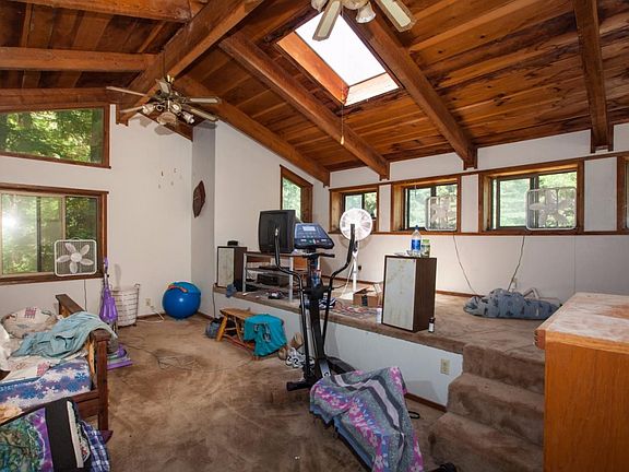 Tucked into a private little forest just under 3 miles to Boulder Creek, this home is bright and full of light and possibilities. The large warehouse is a dream come true for all your creative desires. Currently used as a giant wood shop, and quilt making business, with a greenhouse area on the side, you could use it to store cars, unleash your magical maker side or garden away both inside and out. Wood burning stoves in the master bedroom and dining room and a fireplace in the family room make this place warm and cozy.
