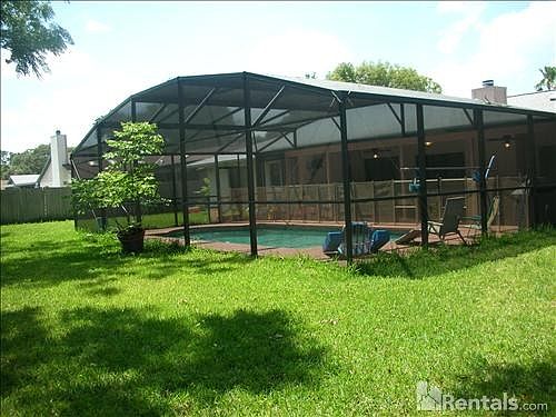 This 4 bedroom 2 bath home is located in Delmar Estates (within The Woodlands). This home is conveniently located near I-4 offering easy commutes to most anywhere. This safe, friendly neighborhood awaits you. Excellent schools are nearby with the elementary and middle schools being within walking/biking distance. For the active individual, the Seminole Trail is a short mile away. The screen enclosed pool is perfect for relaxing or entertaining. Have a BBQ pool side. The great room has a vaulted ceiling and a soothing firelplace. The master bedroom offers a large walk-in closet and sliders leading to the pool. Both bathrooms offer double sinks. The large, fenced yard is perfect for children, a pet or for gardening. You'll find plenty of storage with the large storage shed, the 2 car garage, closets and the attic space. This house has a split plan with 2 bedrooms on one side and 2 on the other side. This house is perfect for a family or busy professionals seeking space, comfort and privacey. The house is pet friendly upon approval of the pet. Smoking is not preferred, but ok OUTSIDE ONLY. Pest control and POOL Service is included. This is a great house waiting for great tenants.