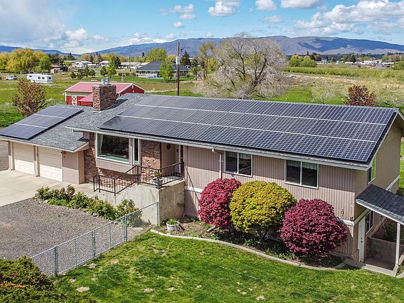 Great country home just minutes west of Yakima at the end of a private driveway. Be self sufficient with gardens, animals & 2 peach, 2 apple, 1 pear & 1 plum trees. 4 bedrooms, 3 full baths. HUGE lower level family room that can be divided into several sections and all new carpet in the lower level. 57 solar panels, most electric bills are $8. Updated baths, extra insulation, circulating hot water, new insulated garage doors. 2 propane fireplaces. Great main suite with a huge walk-in closet. Bosch convection oven. new barn with power, water, hay & grain storage. Fenced and cross fenced pasture. Dog run with door into garage. Concrete curbing. Great schools.