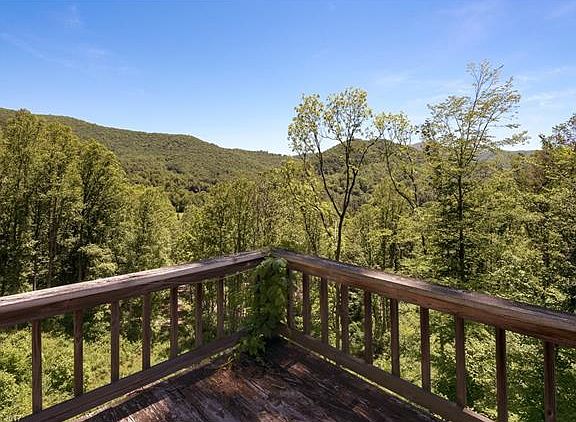 From a hidden tree house to fantastic views, this home is unique! It features a deck off each bedroom, high ceilings, brick paver drive, a kitchen fit for a master chef, an upper and lower 2 car garage, enormous laundry room, & a Dumbwaiter. Master suite has full his & hers bathrooms. Gated community & views of the golf course & Pisgah Mountain. Plenty of storage & space for a workshop.