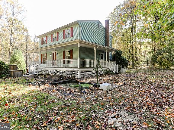 WHAT A SETTING! Set back on a 1+acre lot is this quaint 2-story home with COVERED wrap around front porch! 3 Bedrooms, 2.5 Baths with small stream to the back. Home features living room, dining room, family room open to kitchen with breakfast bar! LARGE deck off of family room overlooking woods. Primary bedroom suite with private bath. All bedrooms generous in size. 2nd floor laundry! Basement features integral 2 car garage and 2 car carport for a total of 4 parking spaces under cover. Additional features include whole house generator (uses propane), water softener, and plenty of storage in basement. A MUST SEE!