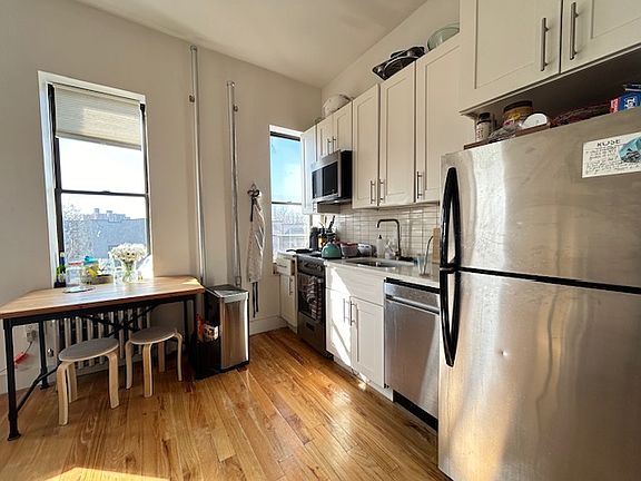 A MUST SEE MAGNIFICENT GUT RENO THREE BED! LARGE UNIT!! NO FEE! **VIDEO AVAILABLE UPON REQUEST** This unit is FULLY gut renovated and is truly a STUNNER!! **TOP FLOOR** Apt Features: Three large bedrooms with built in closets HUGE sunny kitchen living combo Full high end kitchen with SS appliances, granite counters, DISHWASHER and MICROWAVE Gorgeous modern bathroom Large windows in each room Beautiful hard wood floors SUNSOAKED apartment. plenty closet space *High ceilings LAUNDROMAT DOWNSTAIRS Very reliable management and responsive super!! Heat and hot water included!! This unit is a MUST SEE act fast, call/text Alter to view. This unit is located just minutes from the A/C and 2/5 trains. Also close to many groceries, cafes and restaurants. OUT OF STATE GUARANTORS WELCOME.