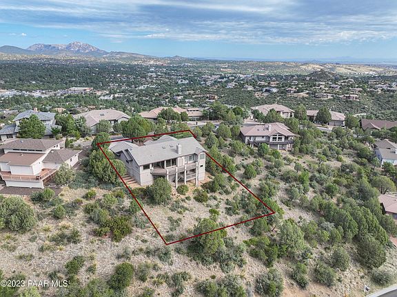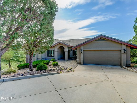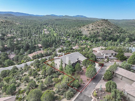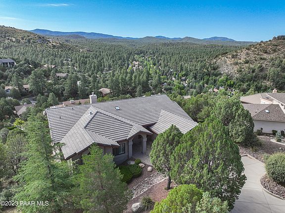 Exquisite home with full views of the Prescott National Forest in Hidden Valley Ranch. Remodeled in 2008 and continued upgrades to 2022. Main level living of apprrx. 2600 SF with downstairs Walkout Suite of apprx. 840 SF. Hickory wood floors in cognac finish, SS appliances, granite counters, magnificent Brazilian Marble fireplace, Trek decks, designer lighting and more. Just 5 minutes from downtown Prescott. Community offers tennis courts, pickle ball, outdoor pool, and more. Amenities list is available under Documents.