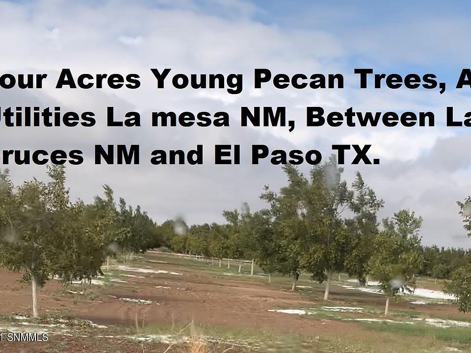 4 Acres of Farm land located in La Mesa, NM. Approximate 100 Pecan producing trees from 8 to 5 years old. New Water Well plus city water meter, septic tank and EBID Water rights on property. Existing building pad ready for you house. Two new electric meters one for water well one for future home. Horses allowed Nice houses in the area. Off Hwy 28 with easy access to I-10. Between Las Cruces, NM and El Paso, TX.