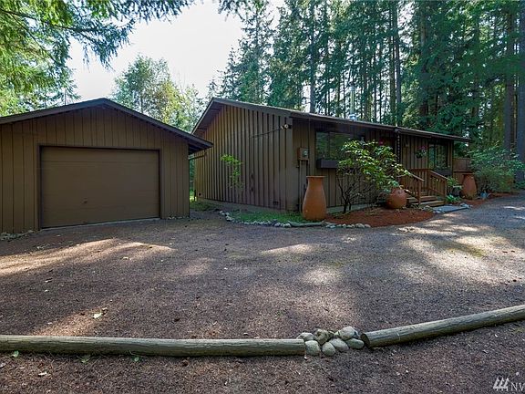The perfect woodland retreat! Charming, well built home on large lot with room to garden and play. Back yard is fenced, front boasts a lovely circular drive + an extra large 1 car garage with room for shop space or storage. This home gets great light, has decks on 2 sides, a propane fireplace & large master. New paint & flooring throughout! Great neighborhood w/huge lots yet still close to shopping, etc. A great place to call home, 2nd home, or even an investment property! click film reel for 3D
