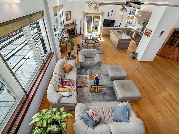 Statement fireplaceSoaring styleNatural light floodsRich hardwood floorsEnd-to-end panoramic viewsDramatic lightEast-facing windows