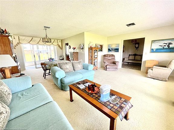 A great opportunity to buy a bright, spacious home in the desirable "River Greens" golfing community. This home is located in a quiet neighborhood with views of Lake Trout. With a split floor plan, 2 living rooms, and glass sliding doors that open into the enclosed back porch provides room for entertaining. The master suite has plenty of space and includes a walk-in closet. This home comes partially furnished and includes some updated appliances. It has a 2 car garage with a garage door and screen door. The backyard is fenced in with a shed. Come check out all the possibilities!