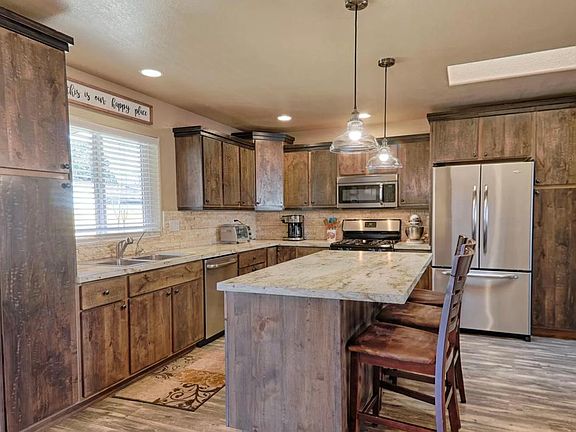 Open floor plan and nice size room with built in draws and closet in master bedroom and walk in closet in the other 2 rooms. Gas stove and plenty of cabinet space/storage space throughout home. Washer and dryer hook up. A beautiful big back yard with bench seat and grill. A shed full of fire wood for the fire place. Also added a dog run by the shed. 5 minutes walk to middle school and high school.