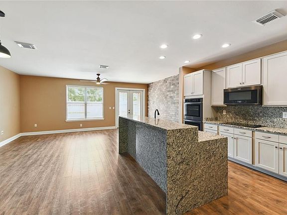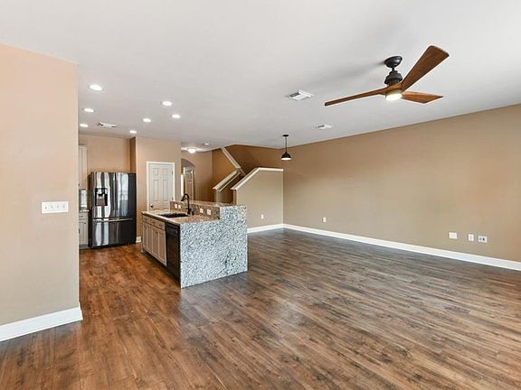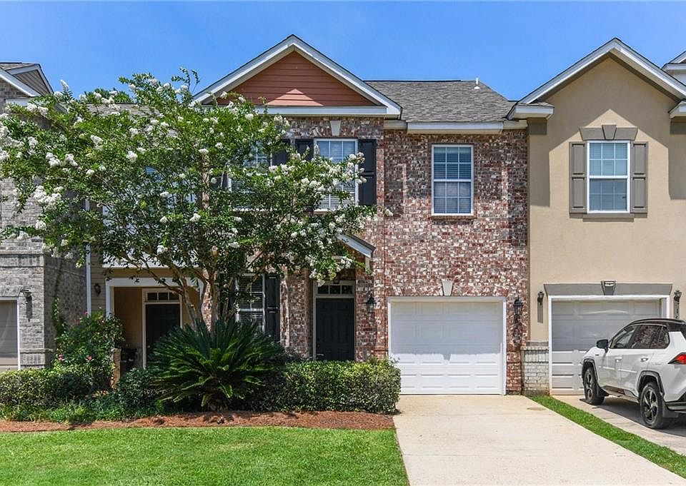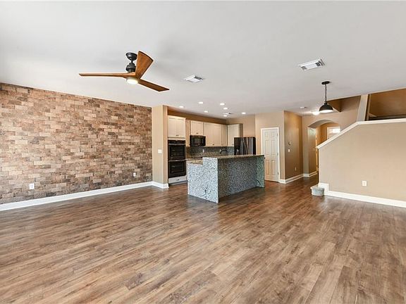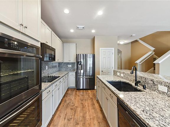Beautiful, freshly painted, and move in ready townhouse with plenty of upgrades! Must see! Granite countertops with waterfall bar and full backsplash. New shaker style cabinets, in-wall double oven, oversized refrigerator, combo microwave/convection oven above flat top stove. All dark stainless steel appliances. Wall to wall waterproof engineered wood flooring, Chicago brick accent wall, and French doors that open up to wooden deck great for entertaining. Large closets and loft that could be used as an office or playroom. Front end washer and dryer included! Roof and HVAC only 4 yrs young! Other amenities include community pool, clubhouse, and play space. Flood zone X. If qualified, $166,000 of asking price is assumable mortgage at 2.25% interest rate.