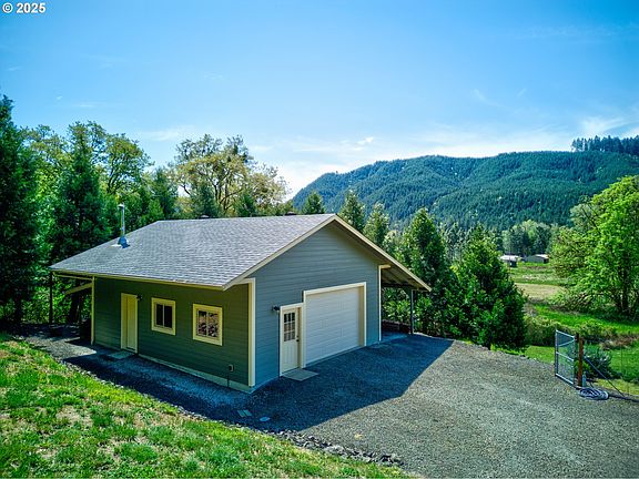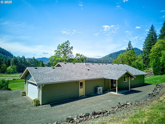 This meticulously maintained, single-level 3-bedroom, 2-bath custom home offers exceptional comfort, style, and privacy. Set on 5.43 serene acres, the open-concept interior features vaulted ceilings, a cozy woodstove, and a well-appointed kitchen complete with an eat-in bar and custom exotic alder cabinetry.Enjoy panoramic garden and mountain views from the light-filled Office/Sunroom, located just off the main living area. The spacious Primary Suite includes a walk-in closet and a full private bath. A large Utility/Mud Room, located just off the attached two-car garage, offers ample cabinetry and storage space.The property also includes a detached, fully insulated shop with 220 power and a full bath—originally lived in while the main house was being built, it's comfortable and versatile for a variety of uses.Gardeners will love the fenced herb and vegetable garden near the house, as well as the established orchard and vineyard in the pasture, featuring a variety of fruit trees and table grapes. Both garden areas are equipped with water faucets for convenient care.As a bonus, ownership includes membership in the Wolf Valley Road Association, granting access to a private park and riverfront on the main Umpqua River—just a short distance away at the end of Wolf Valley Rd. across Tyee Rd.Don't miss the opportunity to own this unique slice of paradise.